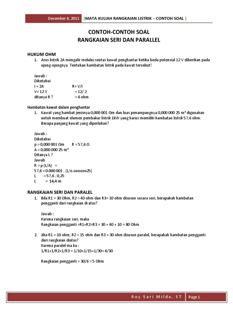 Contoh Soal Rangkaian Hambatan Listrik Matra Pendidikan