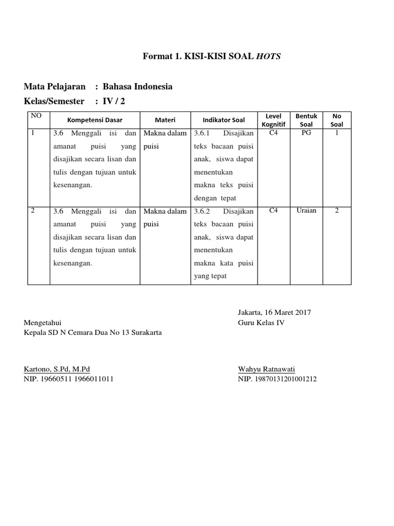 Contoh Kisi Kisi Soal Hots Dan Kartu Soal Guru Berto