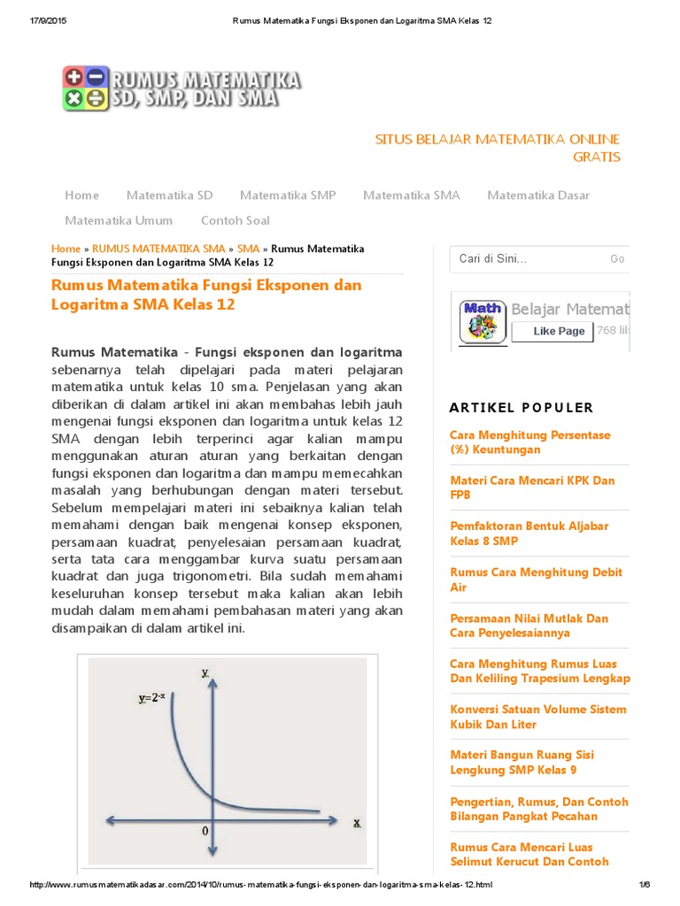 Rumus Matematika Fungsi Eksponen Dan Logaritma Sma