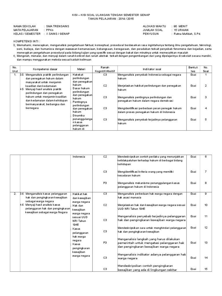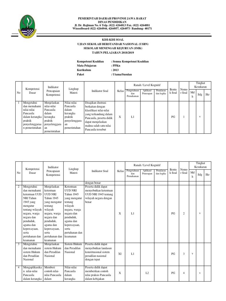 Kisi Kisi Dan Kartu Soal Uts Genap Ppkn