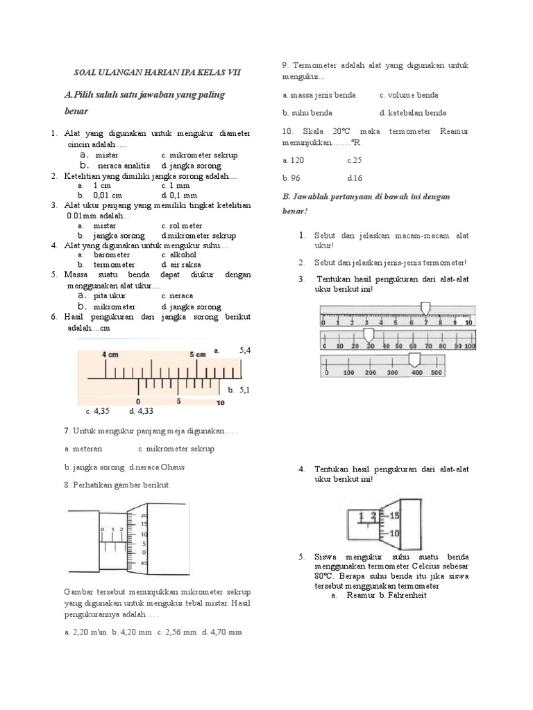 Soal Materi Pengukuran Kelas Vii Smp