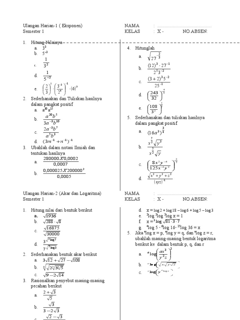 Latihan Eksponen Dan Logaritma Sma Kelas X