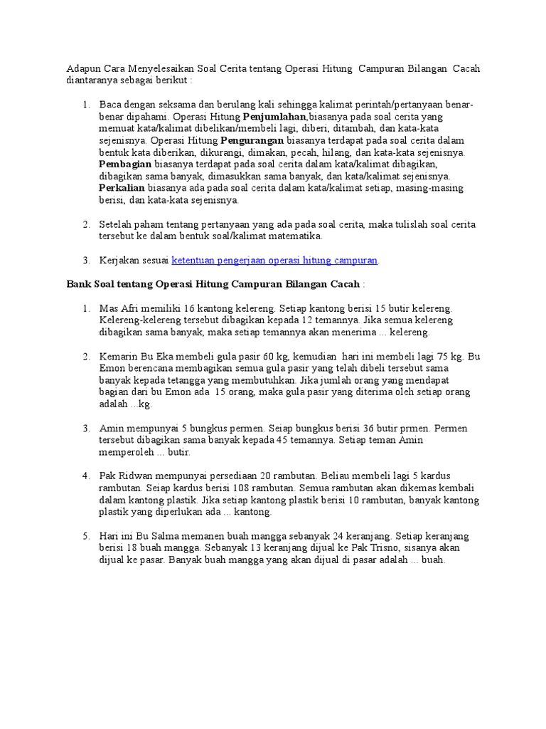 Pembelajaran Soal Cerita Operasi Hitung Campuran Di Sd Pdf