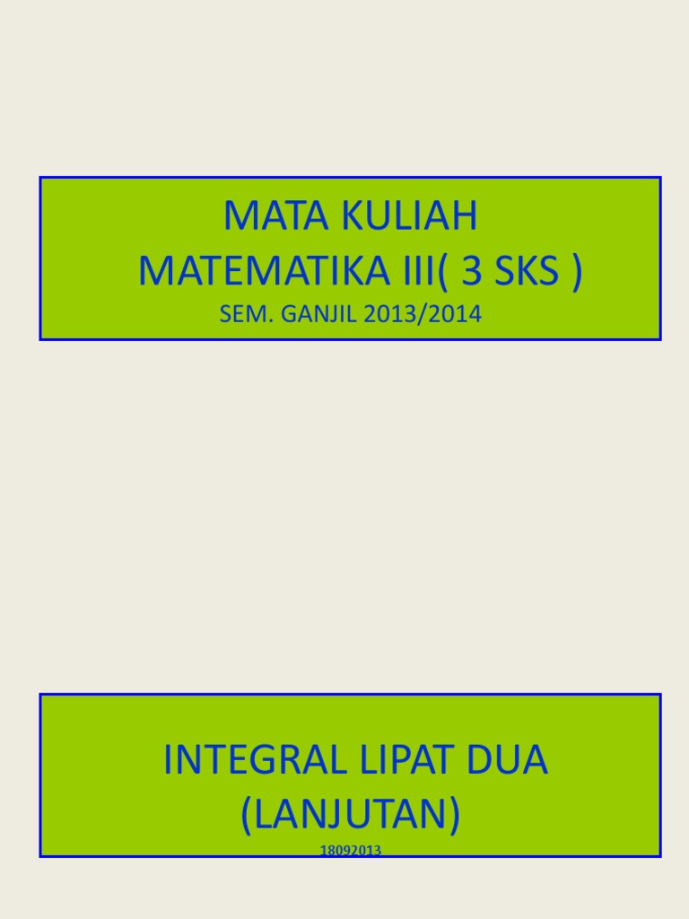 Download with google download with facebook. Mengingat kembali integral lipat dua dan mahir menghitungnya. Memahami arti arti fisik dan geometri dari integral lipat dua.
