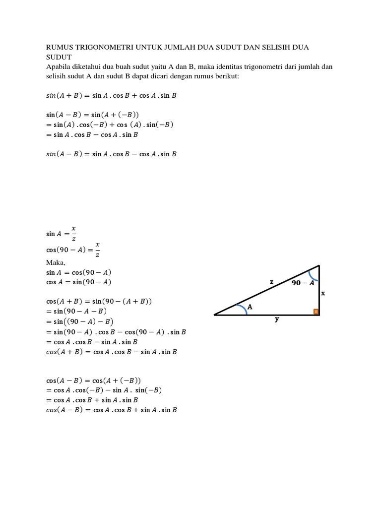 Rumus Trigonometri Untuk Jumlah Dua Sudut Dan Selisih Dua Sudut