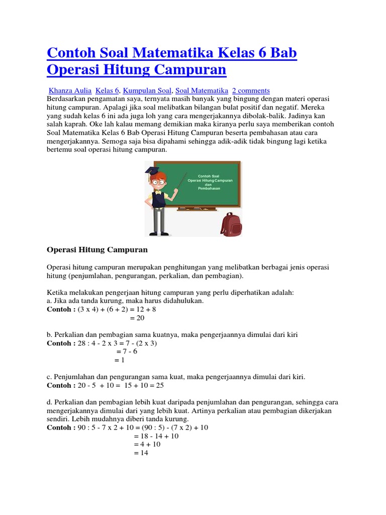 Soal Matematika Kelas 6 Sd Tentang Operasi Hitung Campuran