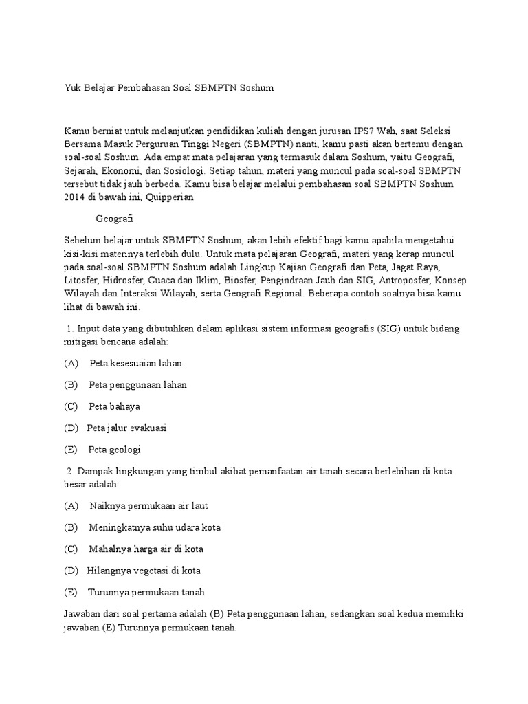 Kumpulan Soal Sbmptn Soshum Dan Pembahasan Gu Buk