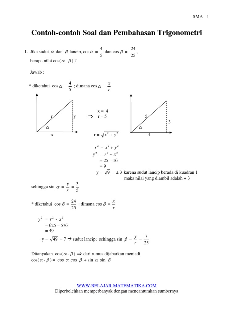 Contoh Contoh Soal Dan Pembahasan Trigonometri Untuk Sma