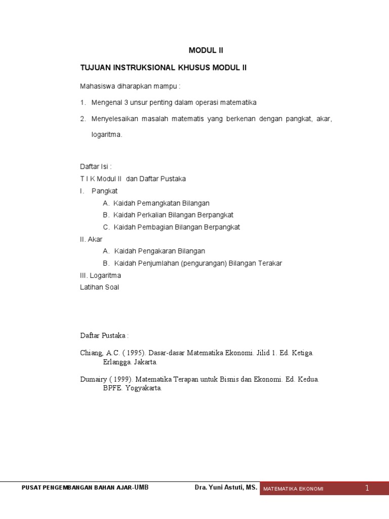 Pdf Matematika Ekonomi I Bab I Pangkat Akar Dan Logaritma
