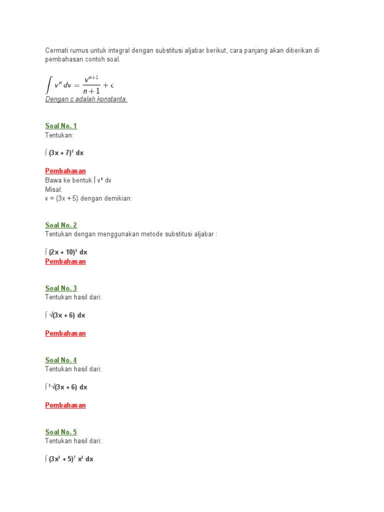 Contoh Soal Integral Substitusi Kumpulan Soal Pelajaran 6