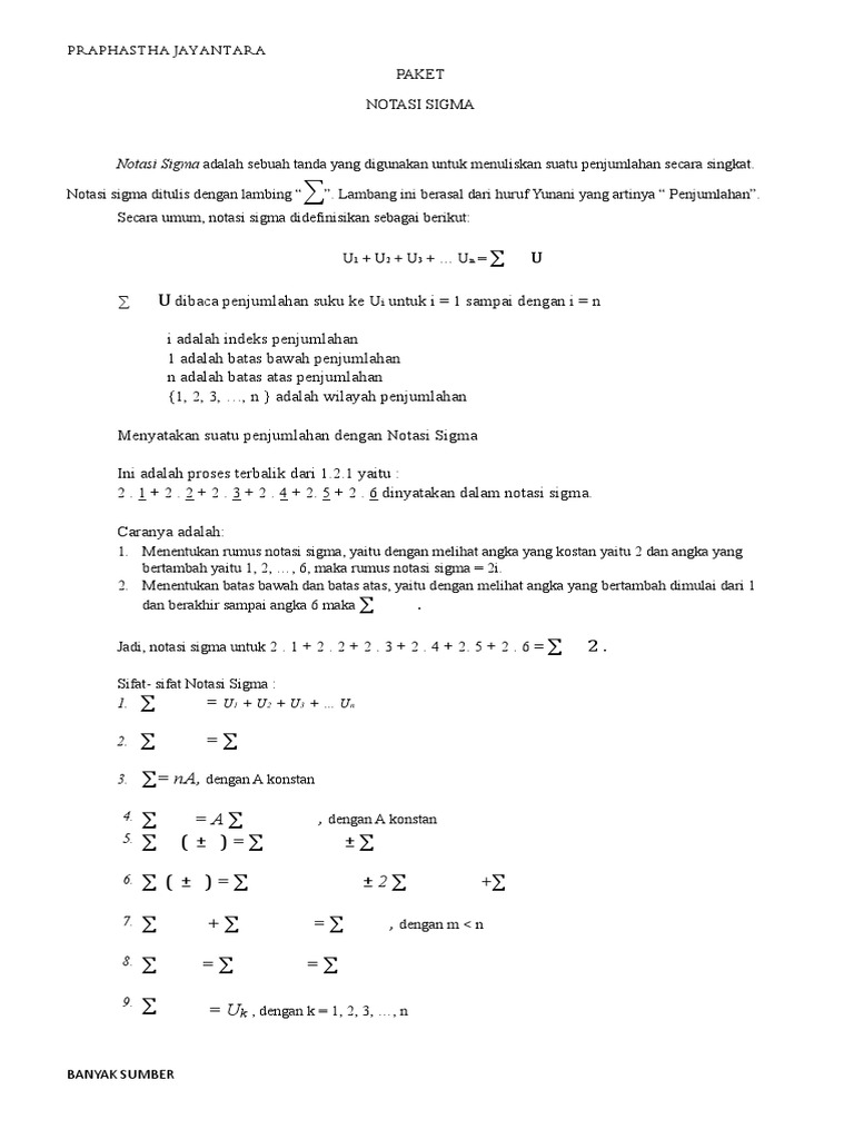 Semangatlah dan setiap mempelajari materi matematika yang ada maka hasilnya akan maksimal. Adapun sifat sifat notasi sigma yakni. Namun dalam hal ini kita tidak akan membicarakan tentang belajar hal hal yang lain namun disini kita akan berfokus pada pelajaran matematika.