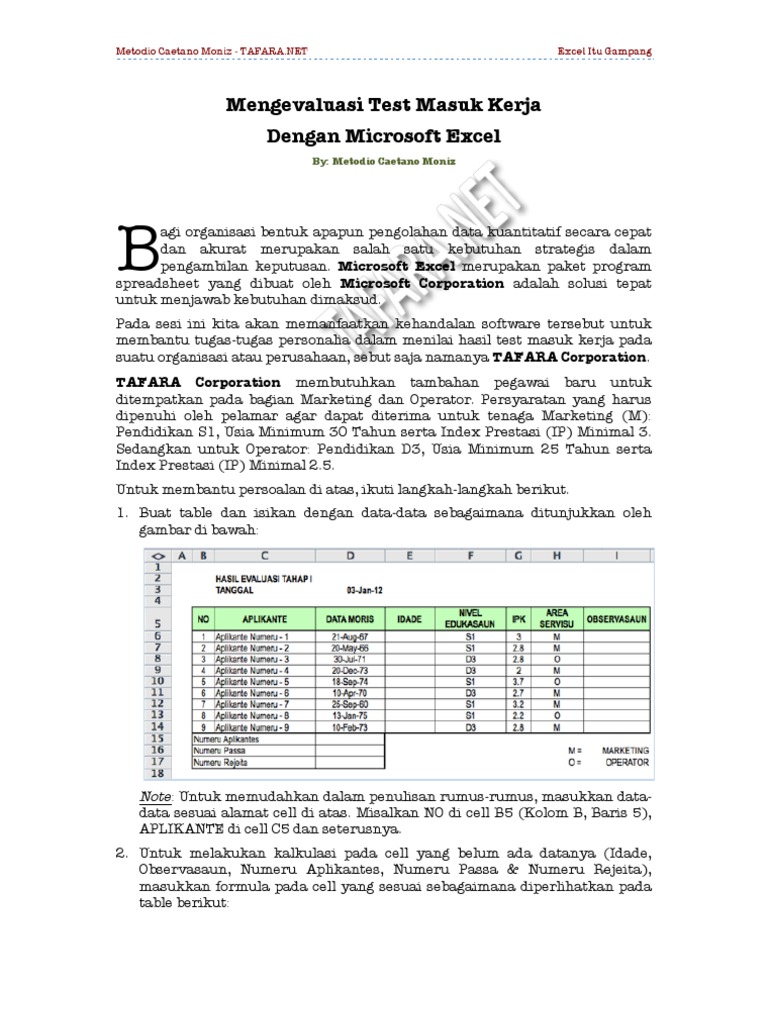 Ujian Tes Praktek Komputer Microsoft Excel Untuk Melamar Kerja
