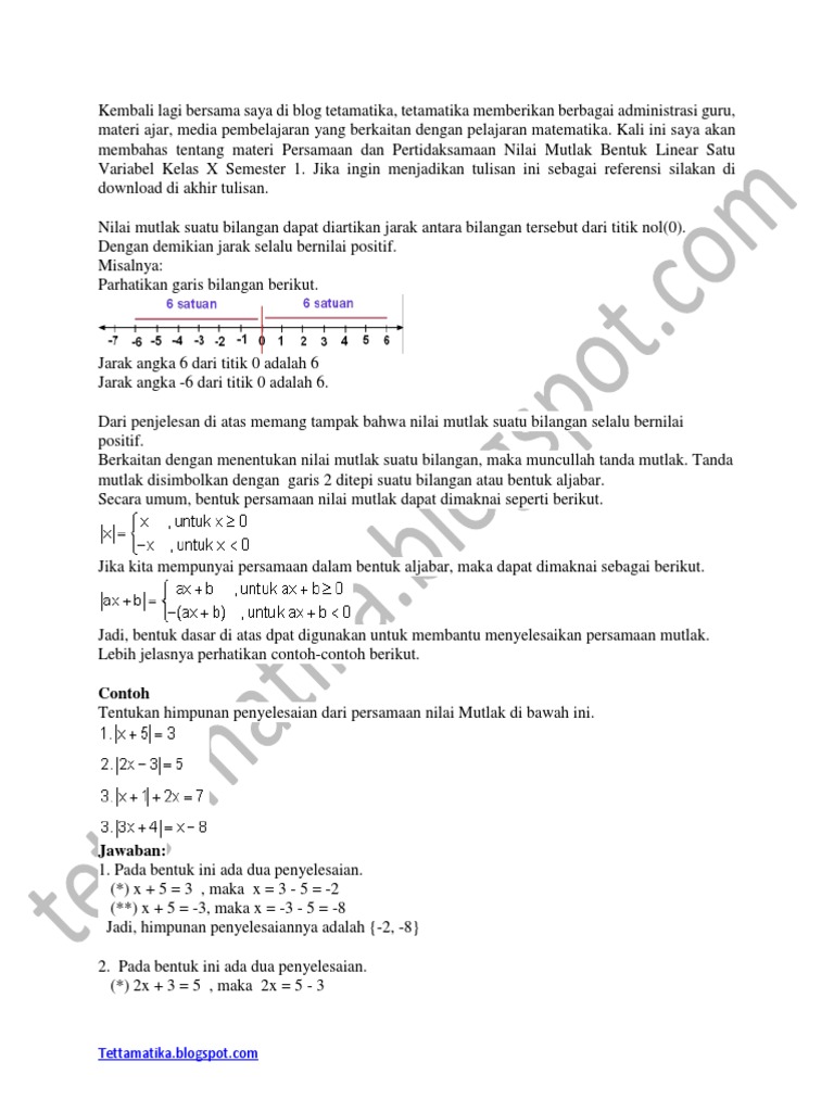 Persamaan Nilai Mutlak Linear Satu Variabel Dumatika Id