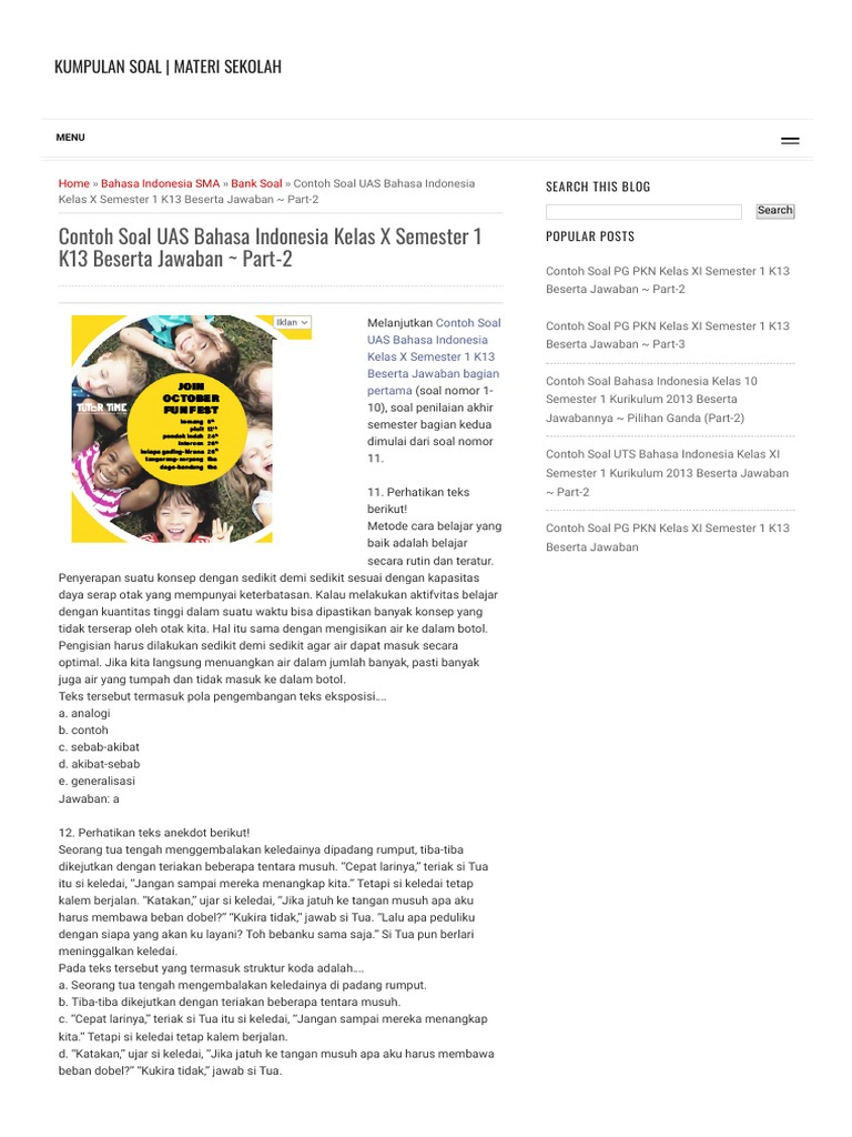 Contoh Soal Uas Bahasa Indonesia Kelas X Semester 1 K13 Beserta Jawaban Part 2 Kumpulan Soal Materi Sekolah 1 from imgv2-2-f.scribdassets.com Contoh soal bahasa indonesia semester 2. Untuk itu langsung saja kita ke pembahasannya. Jumlah soal sebanyak 50 soal.