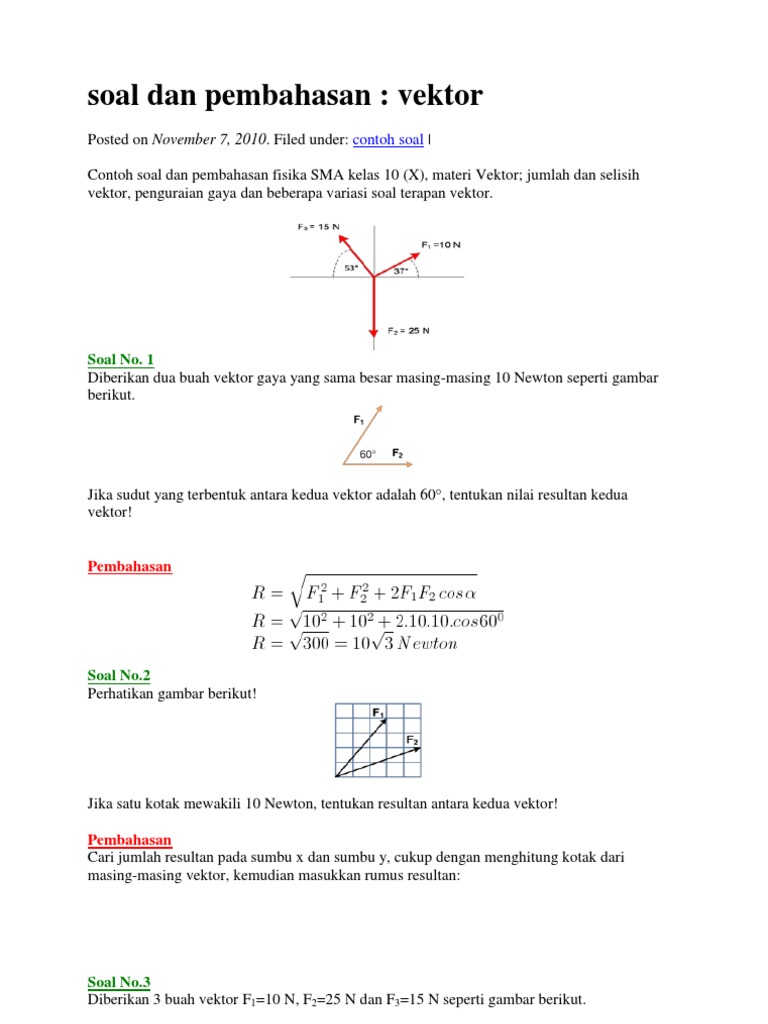 Mau Lancar Sbmptn Yuk Latihan Soal Vektor Matematika Ini from i0.wp.com Contoh soal vektor dan pembahasannya beserta jawabannya by fitra rumus posted on july 11 2019 rumuscoid pada kesempatan kali ini kita akan membahas mengenai contoh soal tentang vektor matematika untuk sd smp sma dan pada kesempatan sebelumnya kita juga telah membahas tentang soal olimpiade ipa sd tahun 2019 nah untuk saat ini materi. Bapak berharap dengan contoh soal yang ada ini, kalian lebih bisa memahami materi tentang vektor dan yang terpenting jangan ragu, jangat takut… Diketahui dua buah vektor a = 8 satuan dan b = 4 satuan saling mengapit sudut 60°.