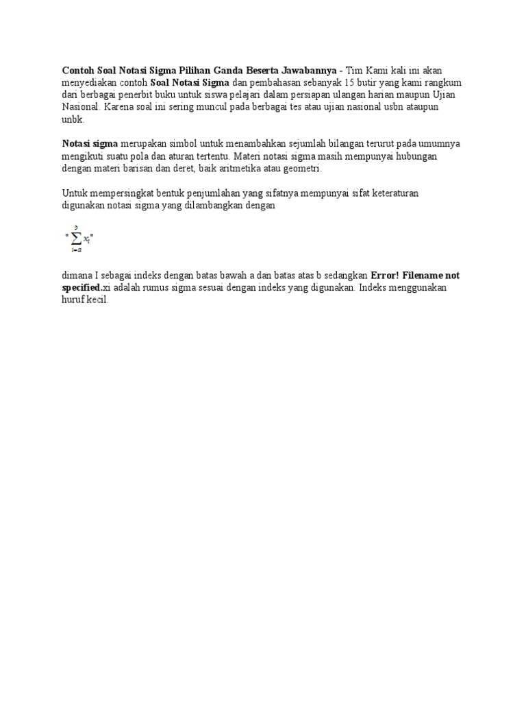 Soal Notasi Sigma. Jika anda paham konsep sebenarnya, maka bagaimanapun bentuk kasusnya akan dengan mudah untuk dikerjakan. Jul 13, 2020 · contoh soal 3.