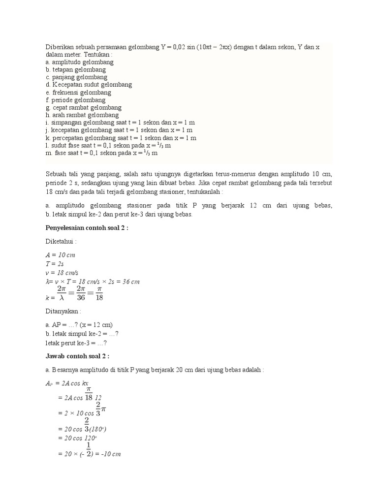Contoh Soal Gelombang Berjalan Dan Gelombang Stasioner