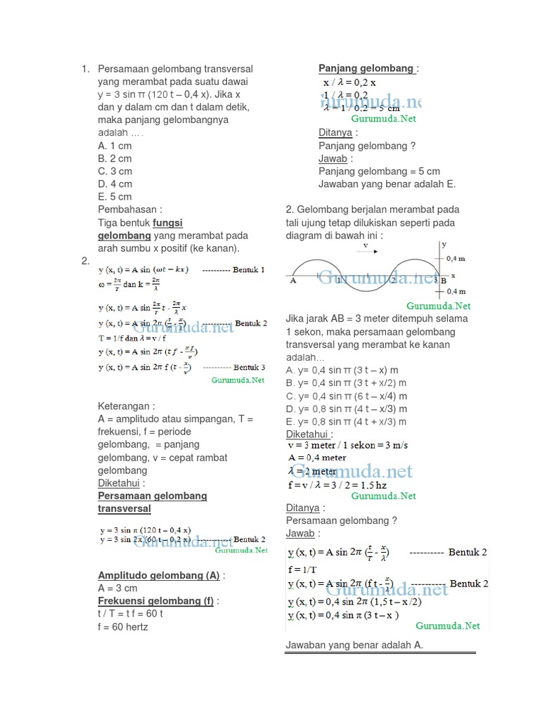 Contoh Soal Gelombang Berjalan Beserta Jawabannya